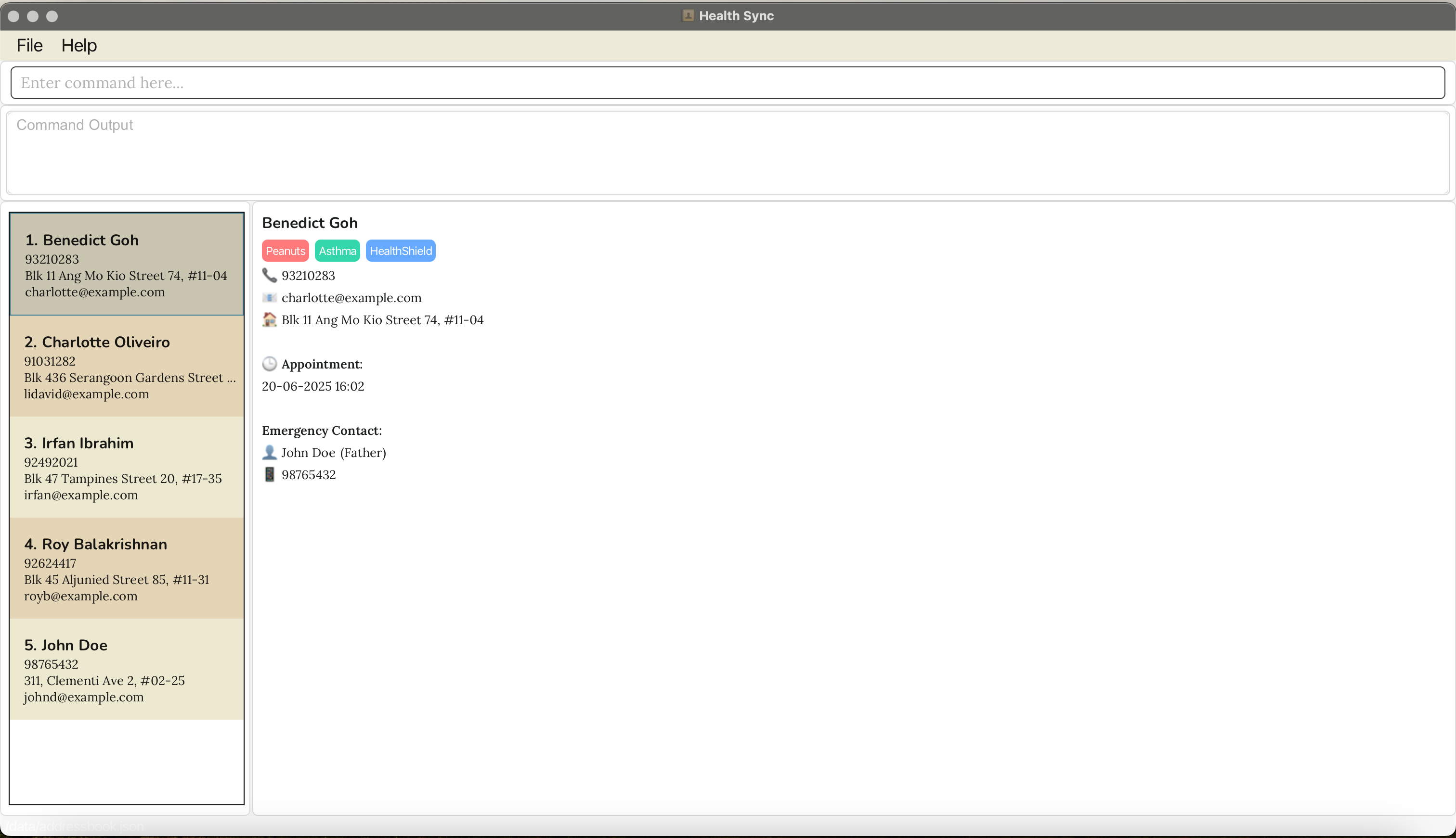 HealthSync is a desktop application designed specifically for healthcare administrators in family clinics. It consolidates patients’ personal details and emergency contact information into a unified, easily accessible database, streamlining the management of critical data.
